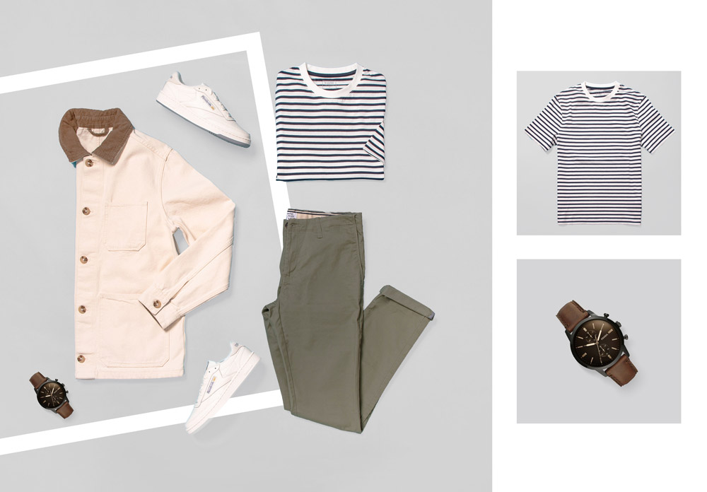 Veste – 59.99€ / T-shirt – 19.99€ / Pantalon – 45.99€ chez Jules.