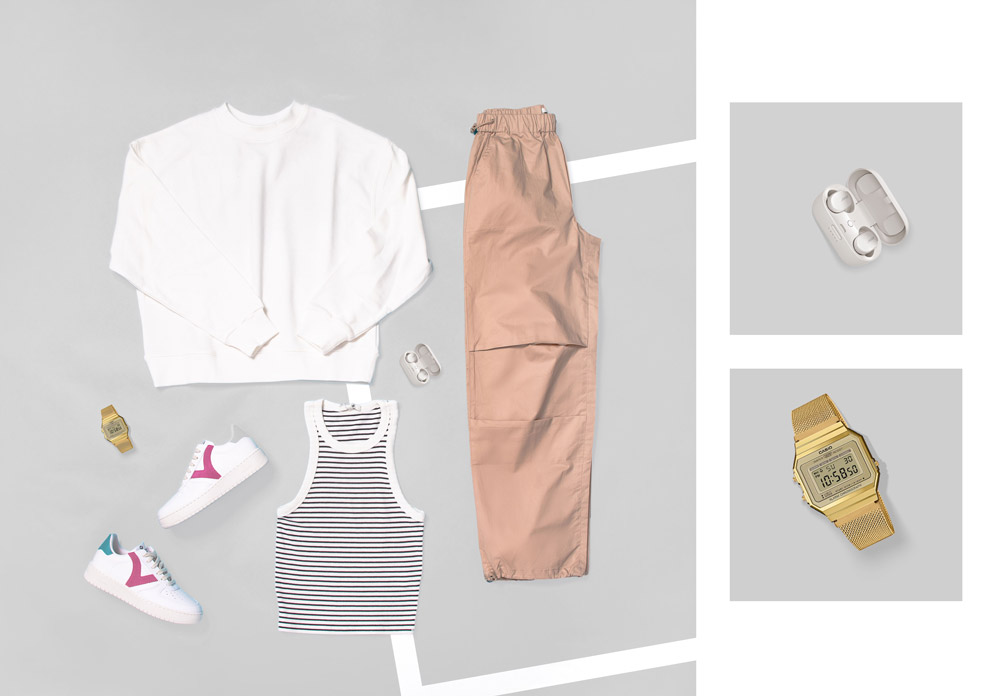 Optez pour une version teenage du haut à rayures, en mode débardeur pour plus de fraîcheur et associez-le à un jean cargo beige aux tons rosés pour une note plus urbaine et contemporaine. Le temps se gâte ? Pas de soucis, il vous suffit d’ajouter par-dessus un sweat oversize blanc tendance pour un peu plus de confort…et de réconfort ! N’oubliez pas vos baskets Victoria dernières générations pour bouger avec aisance au rythme de la playlist que tonnent vos écouteurs Bose. Une petite montre digitale dorée pour vous souvenir d’aller en cours (ou de l’heure à laquelle ils terminent) et le tour est joué !