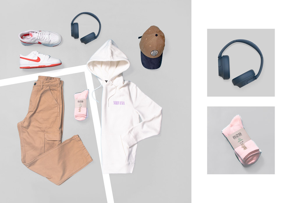 Sweat – 39.99€ / Pantalon – 55.99€ / Chaussettes – 12.99€ / Casquette – 15.99€ chez BZB.