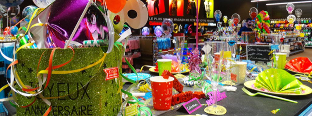 In jouw winkel met feestartikelen kun je terecht voor vaatwerk voor eenmalig gebruik, tafeldecoratie, versiering voor al je feestjes, verkleedspullen en accessoires, grappige cadeaus, ballonnen, vuurwerk, kaarten, geluidsinstallatie, verlichting... met meer dan 17.000 artikelen voor alle gelegenheden.